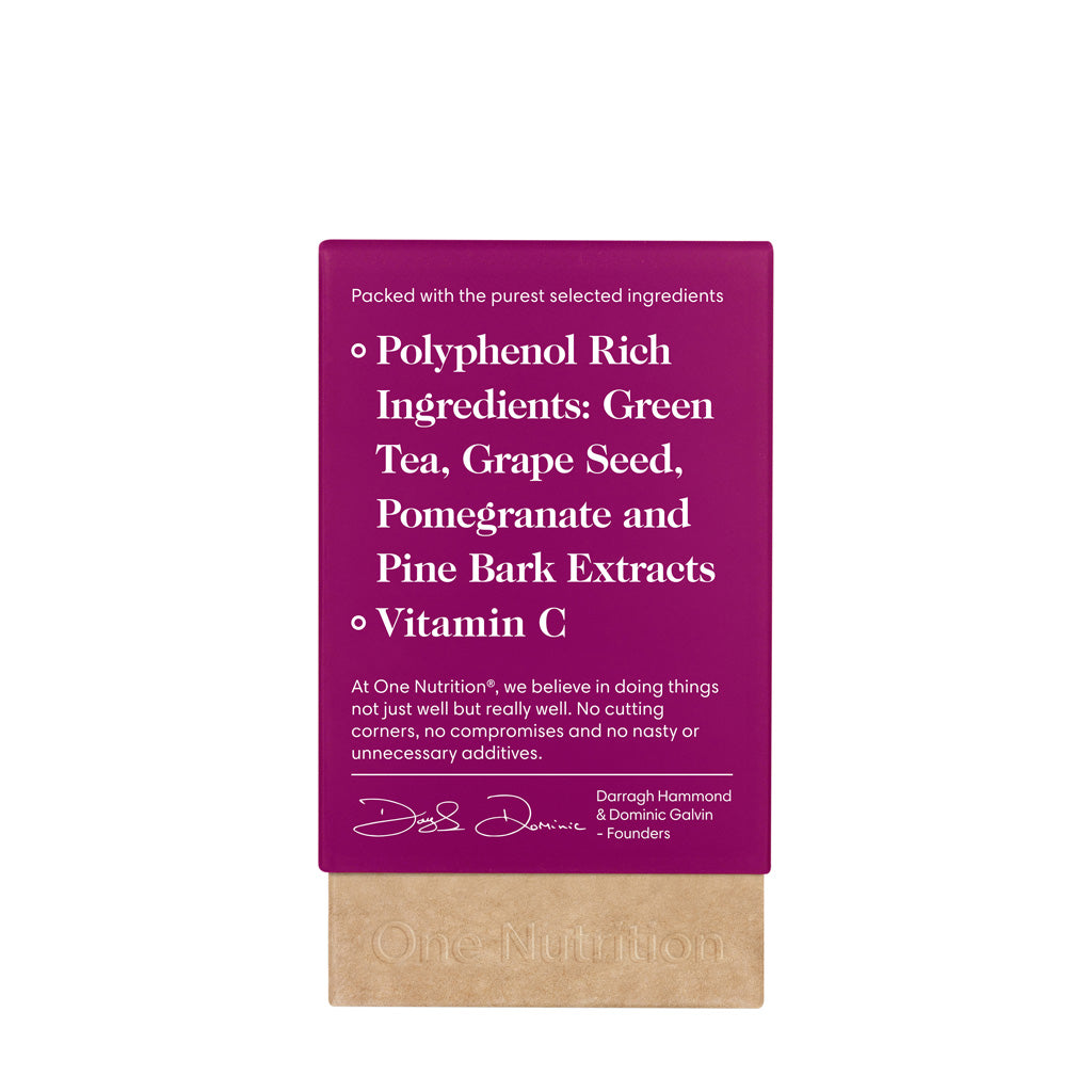 This blend of powerful antioxidants and polyphenol rich ingredients includes Grape Seed Extract, Green Tea Extract, Pine Bark Extract and Pomegranate Seed Extract as well as Vitamin C.