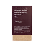 An energizing blend of purified Shilajit (50% fulvic acid), Panax Ginseng, Vitamin C and Zinc. Designed to support energy, performance and endurance, and normal testosterone levels.