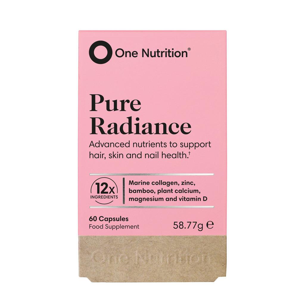 Regular blow-drying, straightening and colouring can take its toll on the look and feel of our hair. One Nutrition Pure Radiance contains Zinc which contributes to the maintenance of normal, healthy looking hair. While it also contains Vitamin B12 and Silica from Bamboo extract.