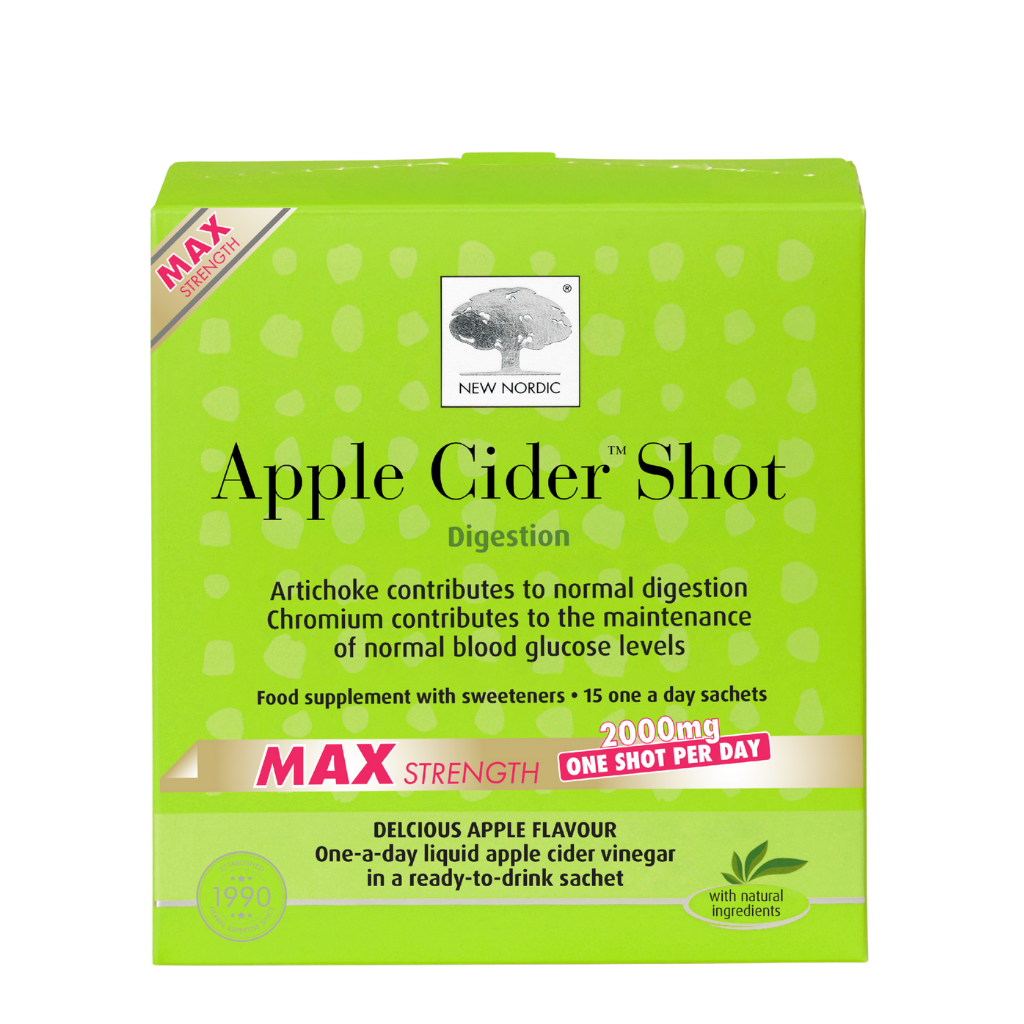 Apple Cider™ Shot is a premium liquid apple cider sachet, pre-mixed with an apple taste and formulated in the perfect dose to fit in effortlessly with your daily routine. Apple Cider™ Shot combines apple cider vinegar, artichoke, dandelion and chromium.